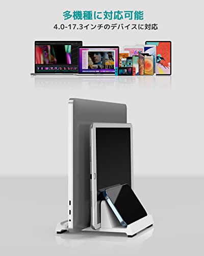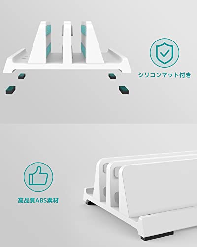 ノートパソコンスタンド 縦置きノートpcスタンド 3台収納 ホルダー幅調整可能 ABS樹脂製 for タブレット/iPad/Surface/MacBook Pro Air
